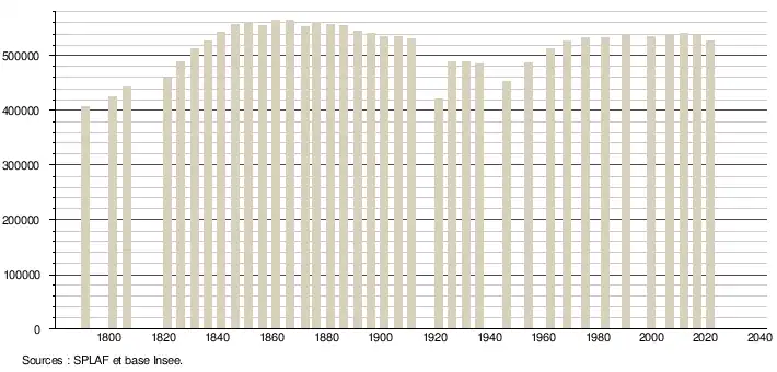 La démographie de l'Aisne est caractérisée par une densité moyenne et une population stable depuis les années 1960.