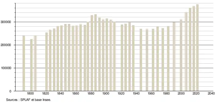 En 2021, le département comptait 376 028 habitants[Note 1], en augmentation de 2,47 % par rapport à 2015 (France hors Mayotte : +1,84 %).