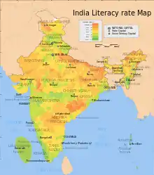 | Taux d'alphabétisme[32] | 75,5 | 60,0 | 90,3 | 70,4 | 73,0 | 95,0 | 50,0 |