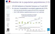 Fin 2017, la population de la Polynésie française est estimée à 276 300 habitants. La collectivité est toujours en transition démographique[14].