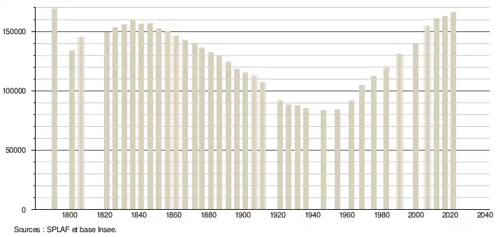 En 2021, le département comptait 166 077 habitants[Note 1], en augmentation de 2,64 % par rapport à 2015 (France hors Mayotte : +1,84 %).
