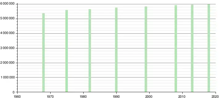 | Variation annuelle moyenne de la population en % | 0,5 | 0,2 | 0,2 | 0,1 | 0,1 | 0,2 | 0,1 |