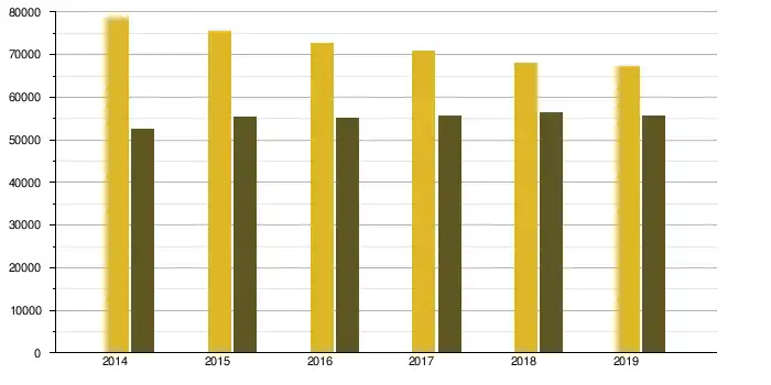 En 2014, 78 506 naissances ont été dénombrées contre 52 467 décès. Le nombre annuel des naissances a diminué depuis cette date, passant à 67 180 en 2019, indépendamment à une augmentation, mais relativement faible, du nombre de décès, avec 55 643 en 2019. Le solde naturel est ainsi positif et diminue, passant de 26 039 à 11 537[4].