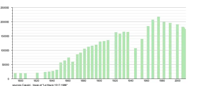 L'évolution du nombre d'habitants depuis 1793 est connue à travers les recensements de la population effectués au Havre depuis cette date :
