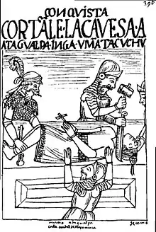 Par exemple, les historiens des pays coloniaux ont écrit que les peuples autochtones pratiquent des pratiques répandues telles que le cannibalisme ou le sacrifice humain[85],[86],[87],[88],[89],[90],[91],[92]. L'historien David Stannard écrit : «...les conquérants européens déshumanisaient délibérément et systématiquement les personnes qu'ils exterminaient.»[93] Les peuples autochtones ont été déshumanisés dans les récits d’intellectuels tels que Juan Ginés de Sepúlveda pour justifier leur esclavage, leur oppression et même leur extermination.Des récits controversés sur ces personnes ont circulé en Europe dans les traductions de lettres de Christophe Colomb[94]. Sepúlveda a utilisé des références à la Bible et à Aristote pour décrire les Amérindiens comme des esclaves naturels[95].