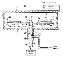 - Plasma-Enhanced CVD (PECVD) - dans lequel un plasma est employé pour augmenter le taux de réaction des précurseurs[2]. Cette variante permet le dépôt à des températures plus faibles (la température étant souvent un point bloquant).