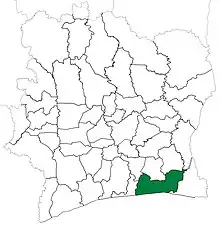 Le département d'Abidjan a été divisé en trois parties, en 1988, dans le but de créer les départements de Grand-Lahou et de Tiassalé[3].