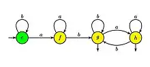 Dans l'exemple ci-dessus, pour , les termes dérivés sont , et . L'automate des termes dérivés est :