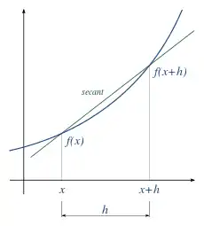 Une simple estimation à deux points consiste à calculer la pente d'une droite sécante proche passant par les points (x , f(x)) et (x + h , f(x + h))[1]. On choisit un petit nombre h, qui représente une petite variation autour de x, qui peut être positive ou négative. La pente de cette droite est