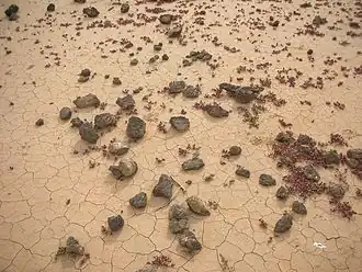 La désertification touche 140 000 km2 en Mongolie[34]. On estime que 683 rivières se sont asséchées récemment et les précipitations accusent une baisse de 10 % par rapport à la moyenne des années 1940[34]. La désertification s'explique en partie par le réchauffement climatique mais aussi par le surpâturage.