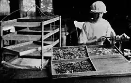 C'est une cage partiellement transparente qui recueille la chaleur des rayons du soleil, dotée de trous d'aération, qui permettent une circulation d'air sec à travers des grillages sur lesquels sont placés les aliments à déshydrater.