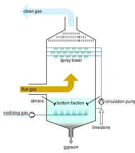 En post-combustion, ce procédé vise à faire réagir de la chaux sous forme de lait de chaux ou de chaux hydratée avec les gaz de combustion. Les réactions chimiques entrant en jeu sont les suivantes :