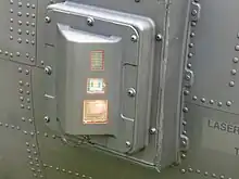 Un détecteur d'alerte laser AN/AVR-2A installé sur le fuselage d'un hélicoptère d'attaque AH-64 Apache.