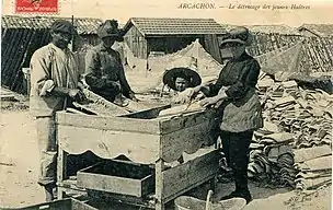 Détroquage dans le Bassin d'Arcachon entre 1900 et 1910 (carte postale).