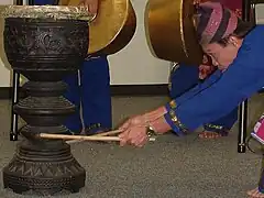 Le dabakan est utilisé pour garder le rythme de l'ensemble musical ; c'est le seul instrument qui ne soit pas un gong.