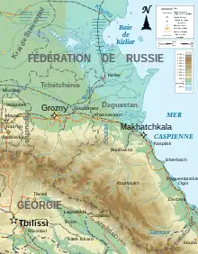 Néanmoins, le Daghestan n'a, contrairement à la Tchétchénie, jamais exprimé de velléités sécessionnistes, du fait notamment de sa population (une mosaïque d’une trentaine d’ethnies et de langues), qui a fait preuve d’unité face à la déstabilisation du pays par les militants tchétchènes[9].
