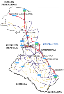 Le Daghestan est traversé par des voies de transport de matières premières, dont Moscou dépend, comme les gazoducs Mozdok (Ossétie du Nord) et Kazi Magomed (Azerbaïdjan), et l’oléoduc Bakou-Novorossiïsk de 1 330 km, qui relie depuis 1997 la capitale de l’Azerbaïdjan à la côte russe de la mer Noire, en passant par Makhatchkala[9]. Concurrencé depuis 2006 par l’oléoduc Bakou-Tbilissi-Ceyhan (BTC) à destination de l’Europe, le gouvernement russe lui a donné un second souffle en 2010 en le reliant au gisement offshore de Yuri Korchagin, le premier exploité par la Russie dans la mer Caspienne[9].