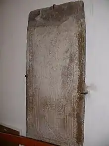 La dalle funéraire, datée vers 1550, est découverte au cours des travaux de 1966, au pied du clocher. Cette pierre représente un prêtre portant un calice à hauteur de la poitrine. La richesse des habits du défunt et la qualité de travail de la gravure indiquent qu'il s'agit d'un religieux de famille aisée.