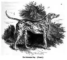Dans l'ouvrage de Thomas Bewick publié en 1792, on trouve la description et le dessin d'un chien dont le poil est blanc et tacheté. Berwick nomme ce chien « dalmatien » ou « chien de coche » car sa fonction première était d'ouvrir la voie au coche et à la diligence transportant le courrier. L'Anglais Vero Shaw rédigea le premier standard du dalmatien en 1882, officialisé en 1890[3].