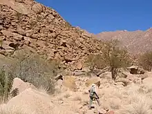 Ce massif montagneux abrite des dizaines de milliers de peintures rupestres et pourtant, celle de la Dame blanche est la plus connue, car ses origines et son interprétation ont longtemps été débattues. On s'accorde maintenant à dire qu'elle a été peinte il y a plus de 2 000 ans par un groupe de bochimans.