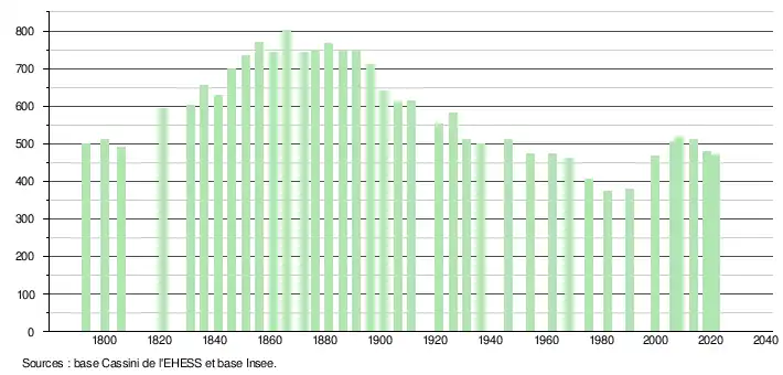 470 hab. (2021 en diminution de 6,56 % par rapport à 2015)
