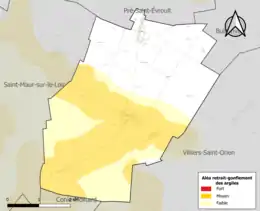 Le retrait-gonflement des sols argileux est susceptible d'engendrer des dommages importants aux bâtiments en cas d’alternance de périodes de sécheresse et de pluie. 37,9 % de la superficie communale est en aléa moyen ou fort (52,8 % au niveau départemental et 48,5 % au niveau national). Sur les 111 bâtiments dénombrés sur la commune en 2019, 69 sont en aléa moyen ou fort, soit 62 %, à comparer aux 70 % au niveau départemental et 54 % au niveau national. Une cartographie de l'exposition du territoire national au retrait gonflement des sols argileux est disponible sur le site du BRGM[16],[Carte 2].