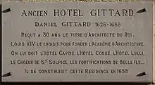 Élève de Louis Le Vau, Daniel Gittard a le titre d'« architecte du roi » dès l'age de 30 ans. Il participe à la construction de plusieurs hôtels particuliers et édifices religieux parisiens : le noviciat de l'Oratoire (1655), le couvent et l'église des Bénédictines du Saint-Sacrement (1658), l’église Saint-Sulpice (1660).
