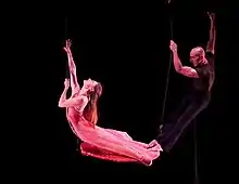 À la fin des années 90, une troupe argentine de danse aérienne nommée De La Guarda a acquis une notoriété à Londres pour son spectacle combinant art de la performance et danse aérienne. La troupe n'est plus en tournée, mais certains membres précédents ont lancé une nouvelle compagnie appelée Cuerda Producciones qui continue de créer des pièces de théâtre de danse aérienne.