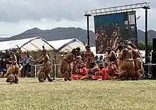 - danses avec gestes synchronisés : activités quotidiennes, sans lien direct avec l'histoire du clan, avec séquences séparées par de courtes pauses, en progression lente, en synchronisation avec la musique,