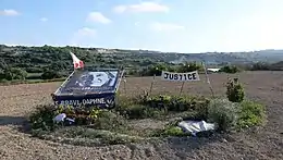 Le 16 octobre 2017, aux environs de 15 h, Daphne Caruana Galizia est tuée dans l'explosion de son véhicule piégé, une Peugeot 108, près de son domicile à Bidjina, alors qu’elle avait rapporté deux semaines auparavant avoir reçu des menaces de mort[5]. L'explosion a pulvérisé le véhicule, projeté et éparpillé en plusieurs morceaux dans les champs en face de la route.