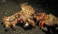 Groupe de Bernard l'ermite portant des anémones (Salawesi, Indonésie)