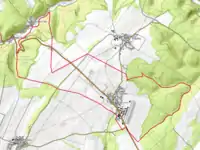 L'occupation des sols de la commune, telle qu'elle ressort de la base de données européenne d’occupation biophysique des sols Corine Land Cover (CLC), est marquée par l'importance des territoires agricoles (55,4 % en 2018), une proportion sensiblement équivalente à celle de 1990 (56 %). La répartition détaillée en 2018 est la suivante : terres arables (46,3 %), forêts (35,5 %), prairies (7,8 %), zones urbanisées (5,1 %), zones industrielles ou commerciales et réseaux de communication (4,1 %), zones agricoles hétérogènes (1,3 %)[12]. L'évolution de l’occupation des sols de la commune et de ses infrastructures peut être observée sur les différentes représentations cartographiques du territoire : la carte de Cassini (XVIIIe siècle), la carte d'état-major (1820-1866) et les cartes ou photos aériennes de l'IGN pour la période actuelle (1950 à aujourd'hui)[Carte 1].
