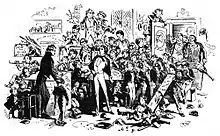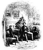 Il arrive que certaines de ses illustrations présentent des détails qui ne figurent pas dans le texte, mais éclairent un personnage ou une situation, « contribuant à une part […] de ce qu’est le roman » (« forming part […] of what the novel is »)[33]. Dickens accepte et encourage même ces indications supplémentaires, parfois subtiles, qui, commentant l'événement, en disent plus que le narrateur. Ce dernier entend rester en retrait, tout comme l'auteur qui, ainsi, se cache derrière l'illustrateur (cf. ci-dessous).
