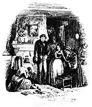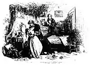 Couverture de la 1re édition en feuilleton de 1849, illustrée par Hablot Knight Browne (dit Phiz). | ||||||||