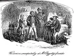 Le , Dickens se rend dans le Norfolk à Norwich et Yarmouth, en compagnie de deux amis proches, John Leech (1817-1864) et Mark Lemon (1809-1870)[13], le premier, illustrateur du magazine satirique Punch et du Chant de Noël de Dickens (1843), l'autre, fondateur et rédacteur en chef du même Punch, et bientôt collaborateur de Dickens à Household Words, puis coauteur avec lui en 1853 de la farce Mr Nightingale's Diary[14]. Les deux villes, surtout la seconde, deviendront importantes dans le roman, et Dickens fait savoir à Forster que Yarmouth lui a semblé « des plus étranges » (« the strangest place in the world ») et qu'il va « sans aucun doute essayer d'en faire quelque chose » (« certainly try my hand at it »)[15]. Au cours d'une promenade dans les environs de Yarmouth, Dickens remarque un écriteau indiquant la petite localité voisine de Blunderston, qui deviendra dans son roman le village de « Blunderstone » où David naît et passe sa petite enfance[11].