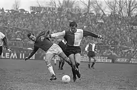 Duel aérien lors du Klassieker de 1966 à Rotterdam. | |||||