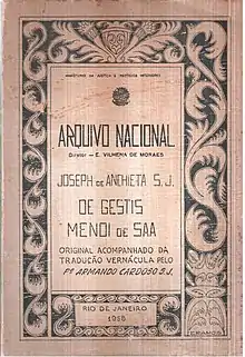 - José de Anchieta. De gestis Mendi de Saa (original accompagné d'une traduction en langue vernaculaire, par le jésuite Armando Cardoso), Rio de Janeiro, Archives nationales, 1958. 256 p. et illustrations.