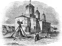 Lorsque le clocher (clopotniţa) a été construit, le complexe monastique était entouré de murs, les bâtiments étant situés dans une cour délimitée par ces murs. En 1698, Constantin Brâncoveanu ordonna la construction d'une porte d'entrée traditionnelle, qui est de la forme d'un clocher. L'édifice a été restauré entre 1956 et 1958.