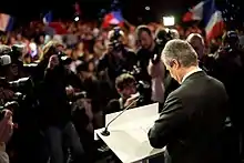 Le , éliminé au premier tour, Nicolas Dupont-Aignan annonce son soutien à la candidature de Marine Le Pen en vue du second tour, ce qui provoque notamment le départ du parti de trois des quatre vice-présidents de son parti (Dominique Jamet, Anne Boissel et François Morvan), ainsi que d'Éric Anceau, responsable du projet, et Olivier Clodong, délégué national aux élections et premier adjoint de Dupont-Aignan à Yerres[47]. Cette union avait été facilitée par l'entremise de l'ancien conseiller de Nicolas Sarkozy Patrick Buisson, du maire de Béziers Robert Ménard et Philippe Olivier beau-frère de Marine Le Pen et ancien de DLF[48].