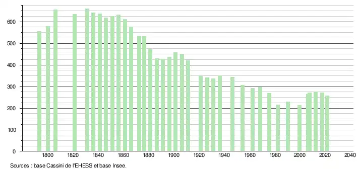 (Sources : Ldh/EHESS/Cassini jusqu'en 1999[17] puis Insee à partir de 2006[24].)