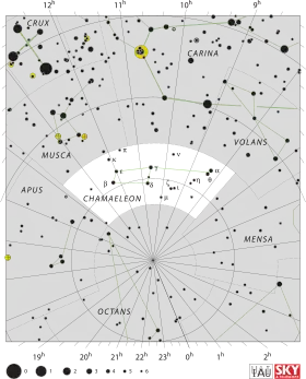 Localisation de δ1 et de δ2 Chamaeleontis dans la constellation du Caméléon.