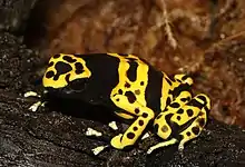 En français, Dendrobates leucomelas est également appelée « Dendrobate jaune et noir »[5].