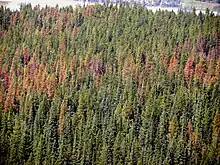 Dans les années 2000, 13,5 millions d'hectares dans l'ouest du Canada sont considérés comme touchés par des pullulations de dendoctrone du pin, qui avance vers les rocheuses et le sud de la Colombie-Britannique.