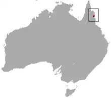On le trouve uniquement dans les forêts humides au Nord de Daintree River et au sud de Cooktown dans le Queensland, c’est-à-dire un rectangle de 70km sur 50 km.