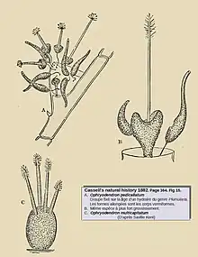 « Le corps trifurqué, atteignant 200 à 300 μm de long ; repose par sa base ovoïde sur un gros pédicule chitineux, en cône allongé de 80 à 100 μm sur 15 à 20 μm de large ; à stries longitudinales (couche sous-pelliculaire). Chaque branche, large d'environ 30 μm, émet sur toute sa longueur des digitations obtuses que termine un faisceau de 8 à 13 tentacules peu ou pas capités (20 à 25 μm X 1,5 à 2 μm de large). Une pellicule assez épaisse... enveloppe tout le corps.