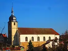 - Église Saint-Rémy construite en 1747 sur les fondations du château médiéval entièrement rasé : clocher à bulbe, quatre statues de pierre 16e, Vierge à l'Enfant en bois polychrome 16e, toile 18e de Girardet ; lustres en cristal de Baccarat, orgue de 1704, restauré, buffet. Le clocher est classé au titre des monuments historiques et l'église inscrite par arrêté du [28].