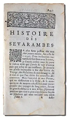 Pour l'historien Maurice Dommanget, il s'agit d'un "des romans sociaux les plus importants et les plus hardis de la fin du XVIIe siècle. Dans cette utopie relevant du communisme autoritaire, tous les citoyens doivent concourir au bien-être général par l’obligation d’un « travail utile et modéré ». La journée est divisée par la constitution due au sage Sevarias « en trois parties égales » : la première destinée au travail, « la deuxième au plaisir et la troisième au repos »[3].