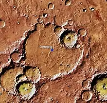 Denning est un cratère d'impact de 165 km situé sur Mars dans le quadrangle de Sinus Sabaeus par 17,5°S et 33,4° E, dans la région de Terra Sabaea.