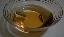 La densité relative d'un corps solide par rapport à un corps fluide est le rapport de la masse du corps solide sur la masse du corps fluide de volume identique à celui du corps solide[8]. On mesure cette densité relative en réalisant trois pesées et en immergeant le solide. Les mesures doivent être réalisées dans les mêmes conditions de pression et de température (souvent les conditions normales : 76 cmHg, 0 °C).