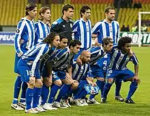 Le Real Club Deportivo de La Coruña[7], abrégé le Deportivo La Corogne, est un club de football de La Corogne, en Galice, fondé le . Le club connaît un certain succès à partir des années 1990 jusqu'au milieu des années 2000, en remportant notamment le championnat d'Espagne en 2000 pour la première fois de son histoire et la coupe d'Espagne en 1995 et 2002. Sur le podium à neuf reprises entre 1992 et 2004, les bleus et blancs ont disputé régulièrement les compétitions européennes à cette époque, avec en particulier cinq participations d'affilée à la Ligue des champions de 2000 à 2005. Le club est entraîné par José Luis Martí depuis .
